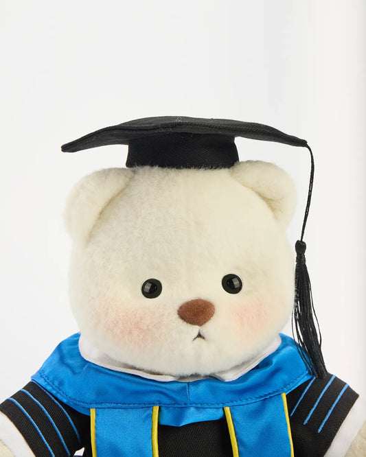 SunPuffy™ Mezuniyet Kepi ve Cüppesi Mavi Etekli Ayı